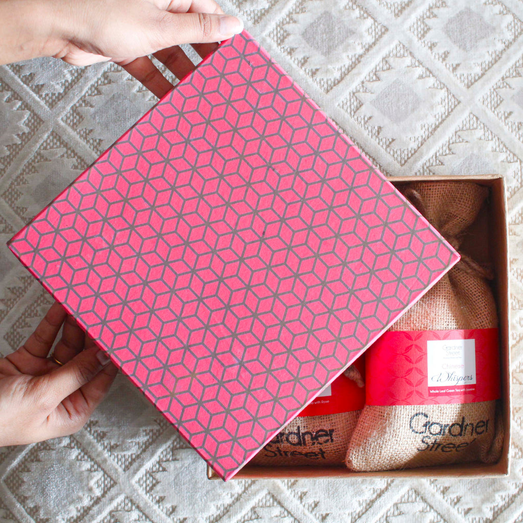 This Festivity Box is giving us all the season feels ! The touch of gold adds that sparkle while the jute bags inside add the perfect rustic touch. With 50gms of loose leaf tea of your choice inside every jute bag, this gift packs a substantial punch! Complete with a matching ribbon and tag, this gift box is sure to delight all those who receive it.